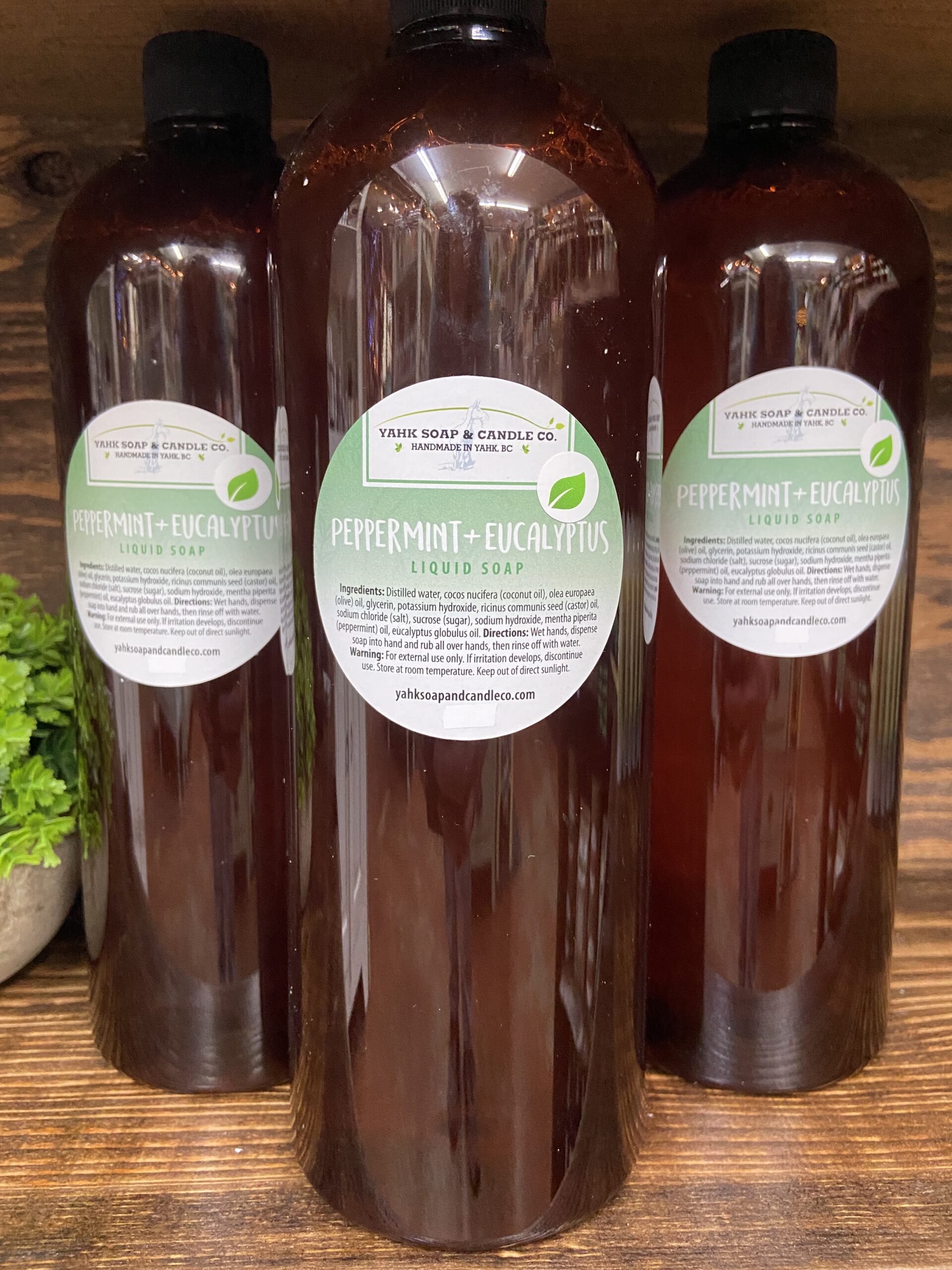 Distilled water, coconut oil, olive oil, glycerin, potassium hydroxide, castor oil, salt, sugar, sodium hydroxide, peppermint essential oil, eucalyptus essential oil.